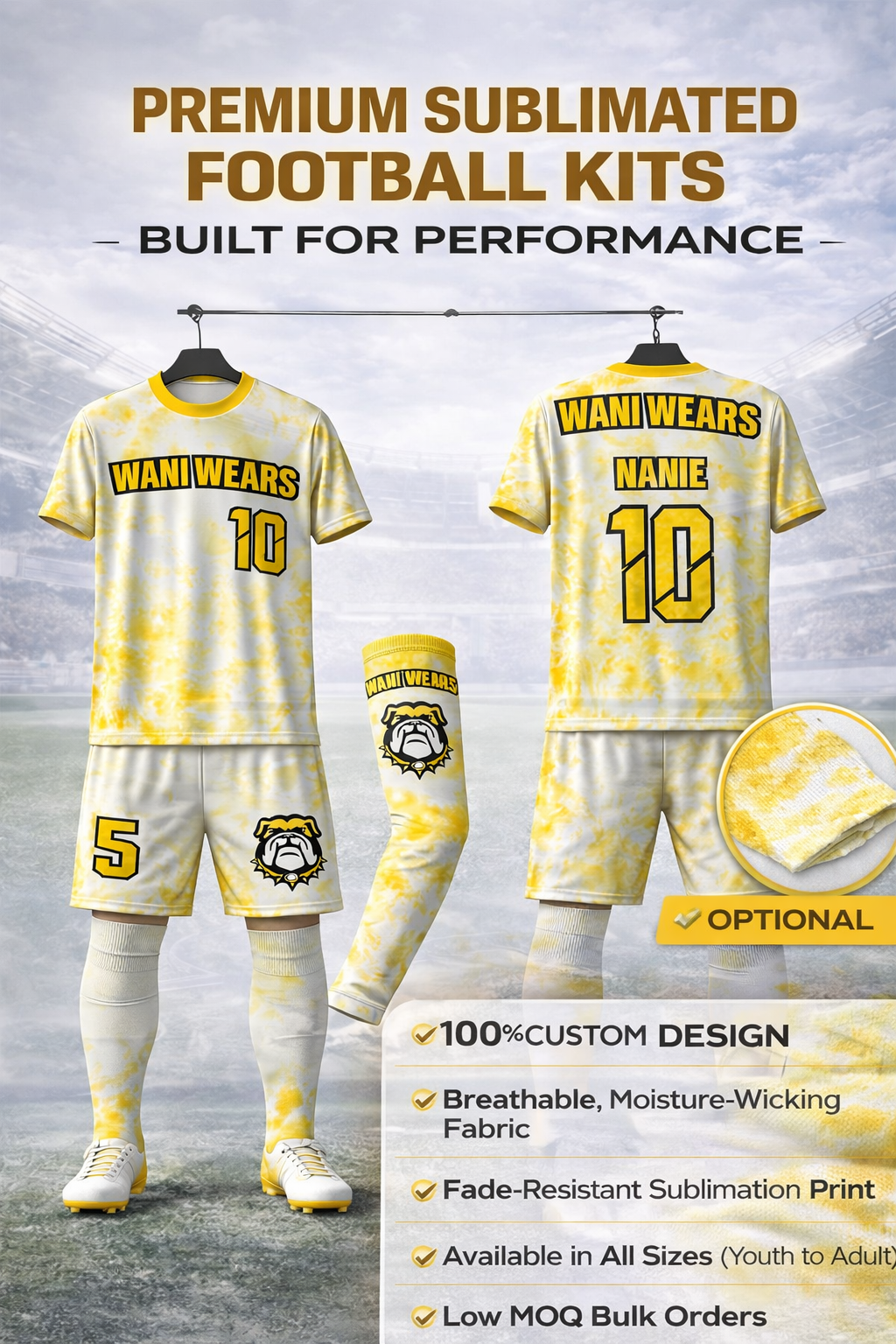 Upgrade your team identity with wani wears custom sublimation soccer uniforms—engineered for performance, durability, and elite style. Ideal for clubs, teams, academies, and sports brands, we offer fully customizable football kits with low MOQ and worldwide export.